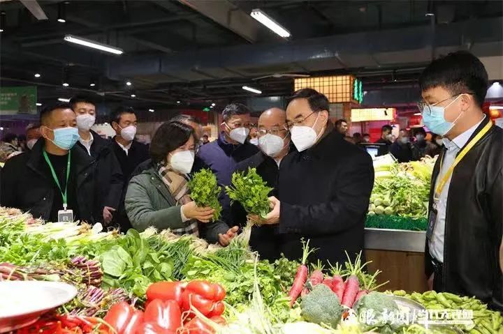 1月20日,省委书记、省人大常委会主任徐麟,到新路口农贸市场调研春节期间民生保障、市场供应、安全稳定、疫情防控等工作,代表省委、省政府对节日期间坚守岗位的广大劳动者表示感谢,祝全省人民新春快乐、幸福安康。徐麟在新路口农贸市场详细了解年货供应、保供稳价等情况。